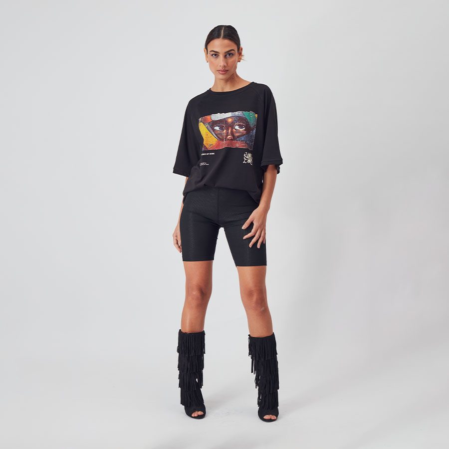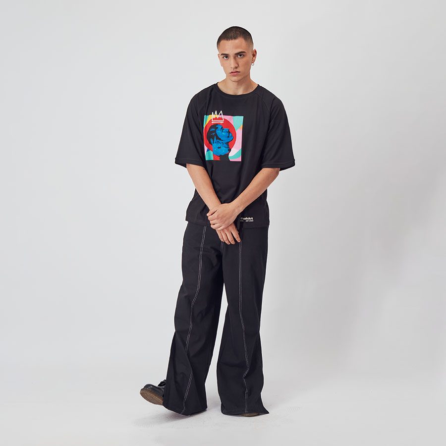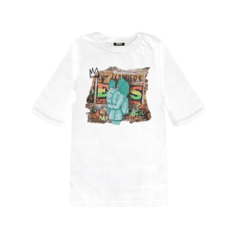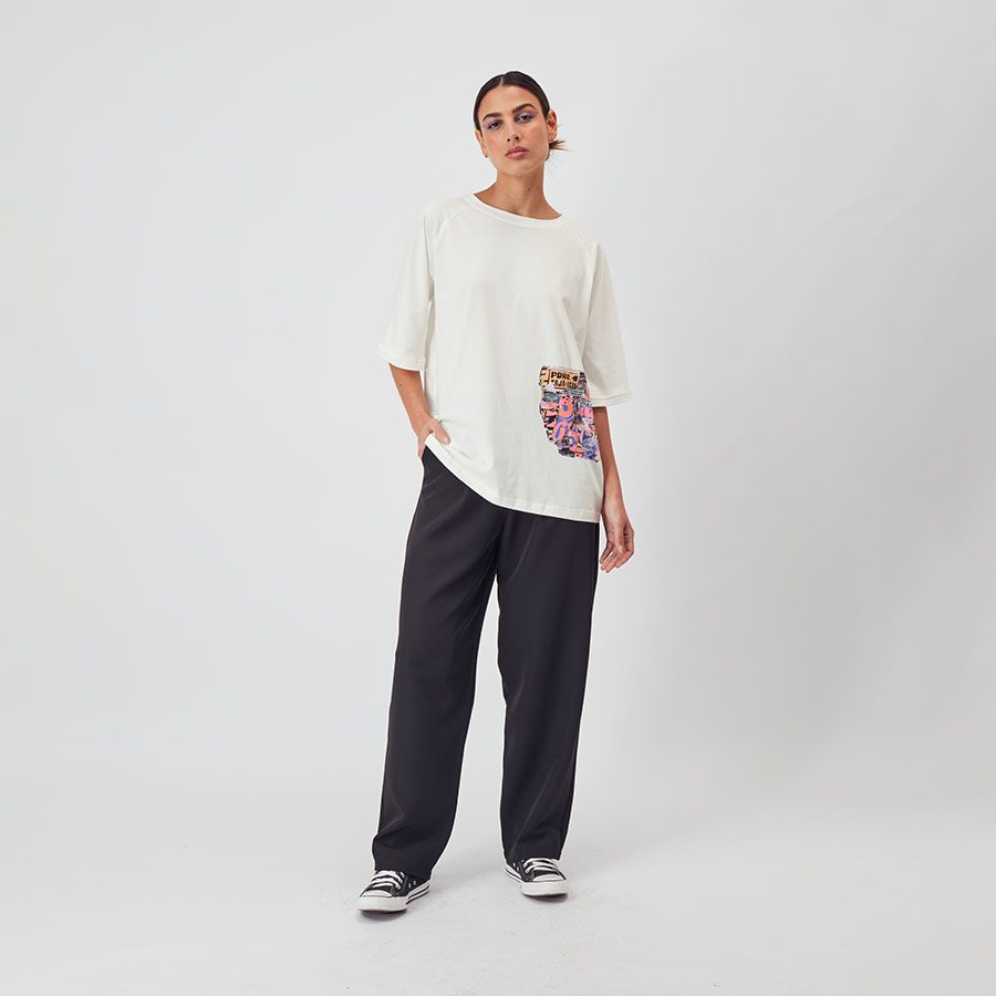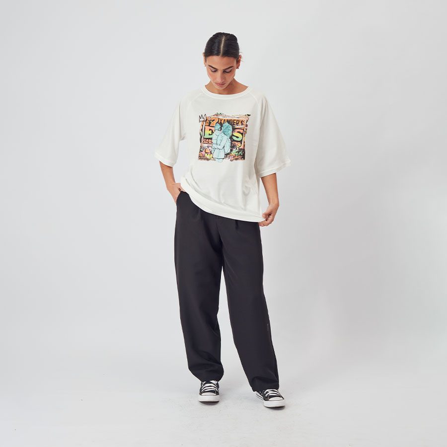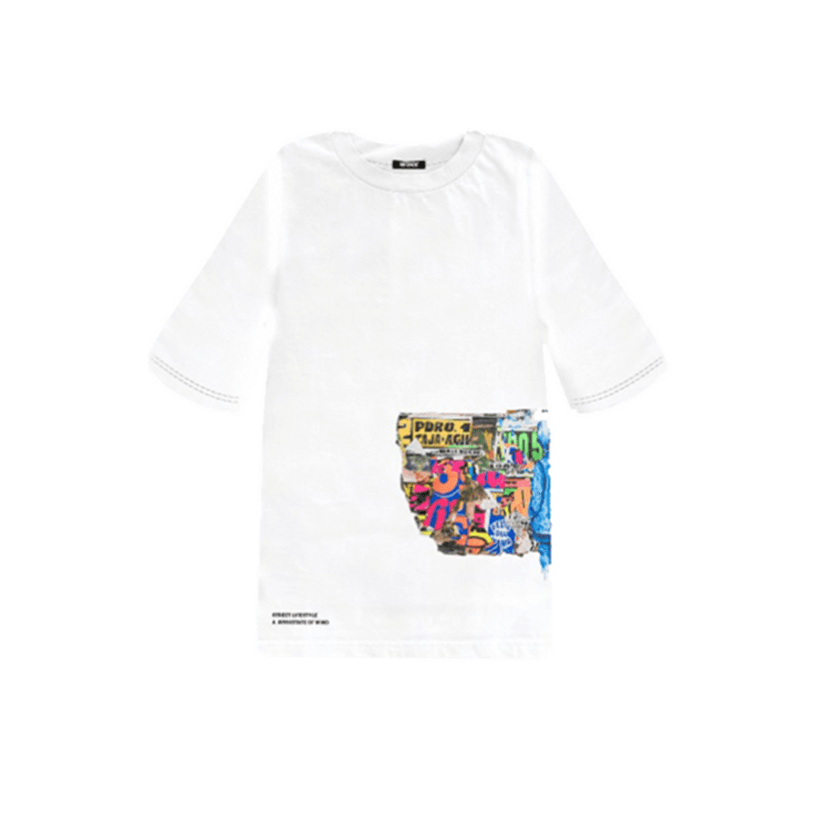Experience urban art with our ‘MURAL’ polo, capturing street energy in every detail – Polo Mural en collab con Entes, No Gender Oversized, disponible en blanco